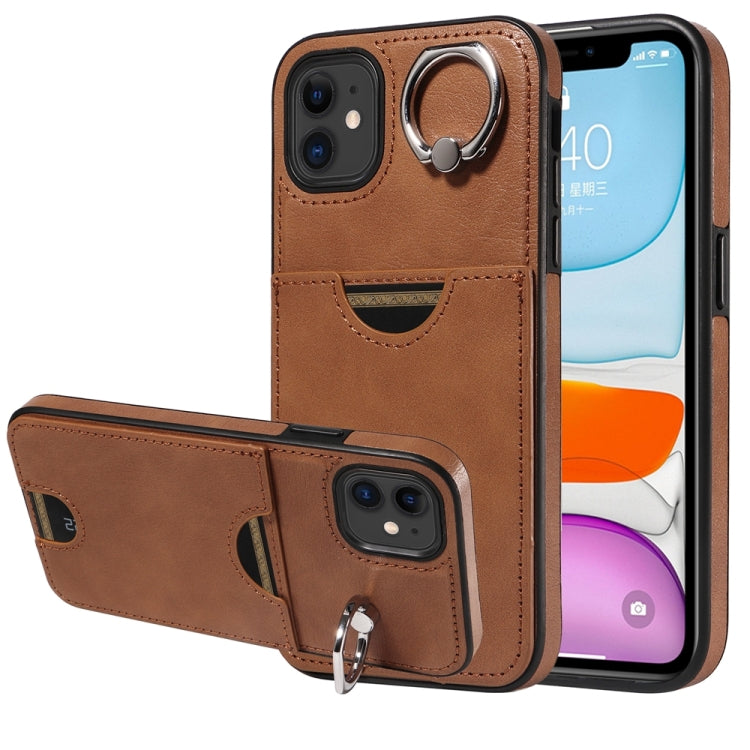 Funda para Teléfono iPhone 11 con Soporte para Anillo y Ranura para Tarjeta (Marrón)