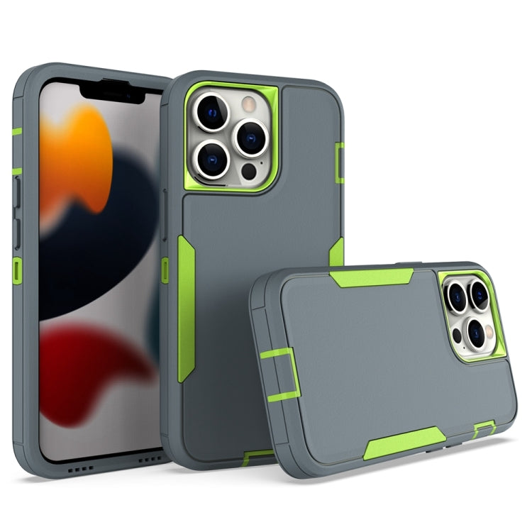 Funda Magnética para iPhone 13 Pro 2 En 1 PC y TPU (Gris + Verde Fluorescente)