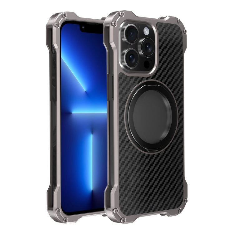 Caja de Teléfono R-Just RJ51-1 para iPhone 13 Pro con Soporte Giratorio Hueco (Gris Plateado)