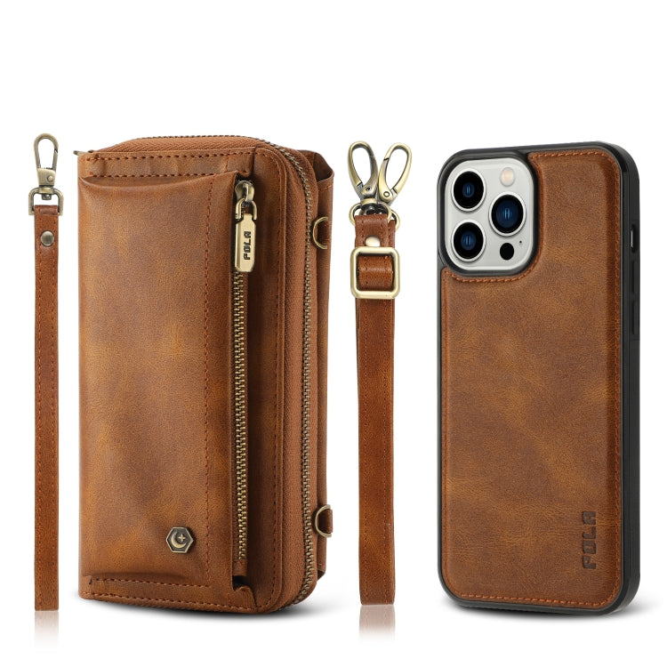Funda de Cuero Crossbody para iPhone 13 Pro con Billetera y Cremallera Multifuncional (Marrón)