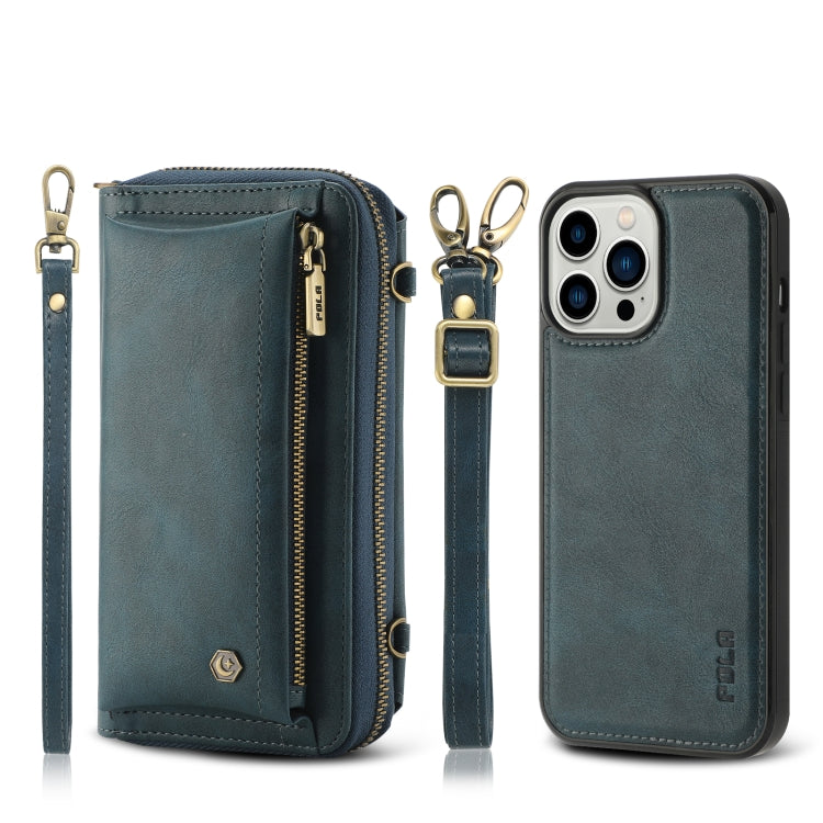 Funda de Cuero Crossbody para iPhone 13 Pro con Billetera y Cremallera Multifuncional (Verde)