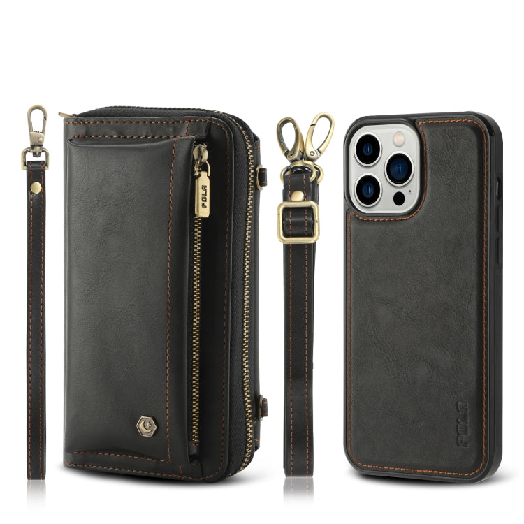 Funda para teléfono iPhone 13 Pro Crossbody de cuero con billetera y cremallera multifuncional (Negro)