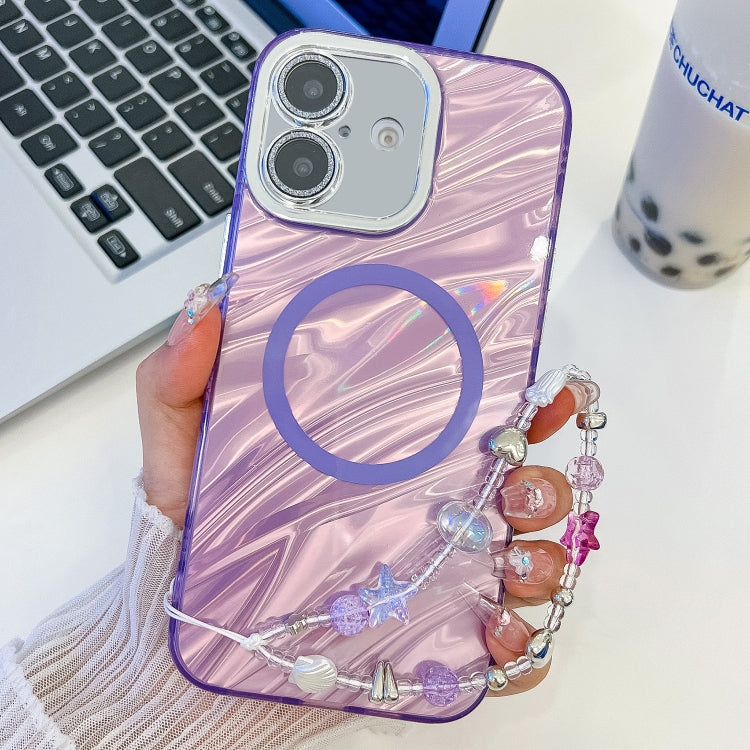 Funda para Teléfono TPU Magsafe iPhone 16 Textura Chapada Película Lente (Ondas de Agua Moradas)