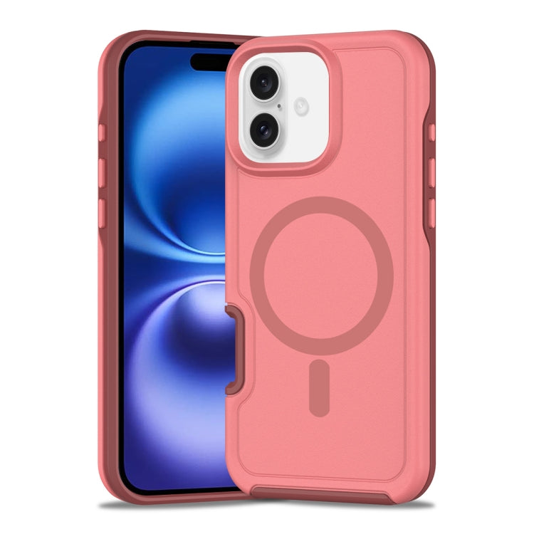Funda híbrida TPU y PC iPhone 16 Protección Magsafe Prueba de Golpes (Rosa Claro y Rojo Coral)