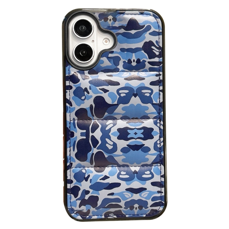 Funda para Teléfono iPhone 16 con Airbag y Diseño de Edredón de Camuflaje (Azul-B)