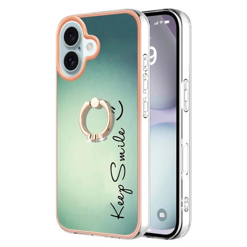 Estuche para Teléfono Imd Doble Cara con Galvanoplastia y Soporte para Anillo para iPhone 16 (Sonrisa)