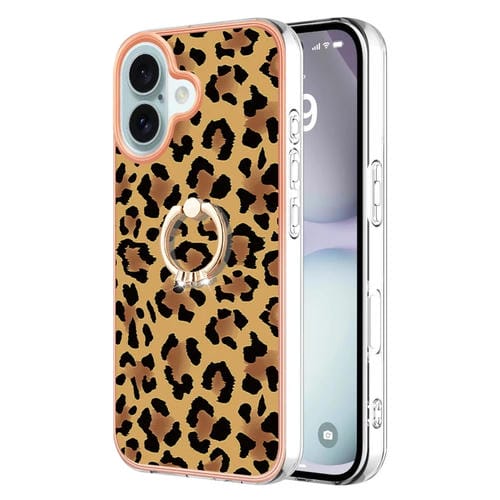 Estuche para Teléfono Imd Doble Cara con Galvanoplastia y Soporte para Anillo iPhone 16 (Leopardo)