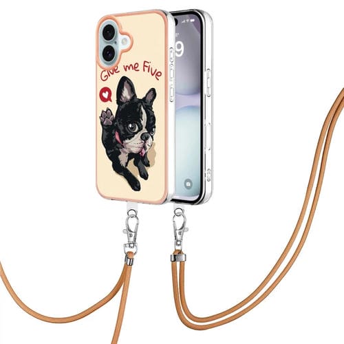 Estuche para Teléfono IMD Doble Cara con Galvanoplastia y Cordón para iPhone 16 (Perro de la Suerte)