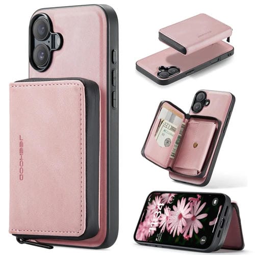 Funda para iPhone 16 Jeehood J02 Cuero con Tapa Horizontal y Cremallera Magnética (Rosa)