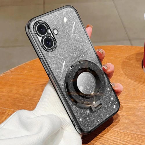 Funda TPU con Soporte Redondo y Purpurina Degradada para iPhone 16 (Negra)