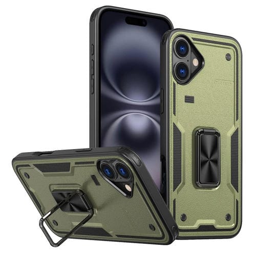 Funda híbrida TPU y PC con soporte para anillo iPhone 16 (Verde Oliva)