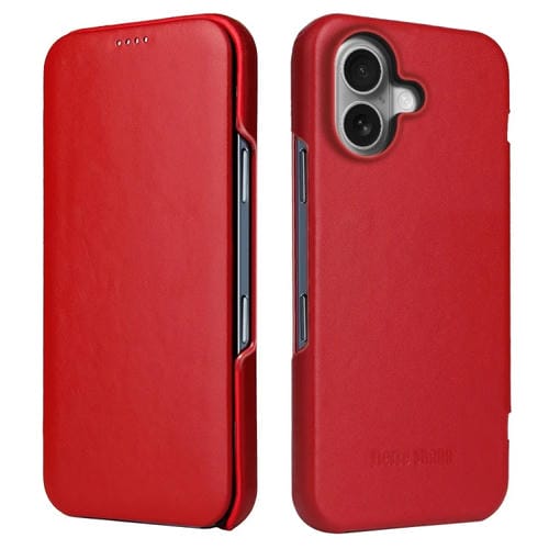 Funda de Cuero Fierre Shann para iPhone 16 con Tapa Magnética (Rojo)
