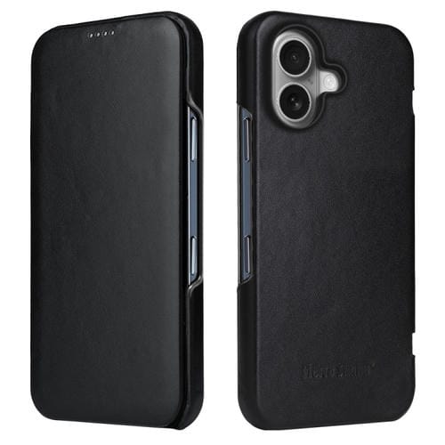Funda de Cuero con Tapa Magnética Fierre Shann para iPhone 16 (Negro)