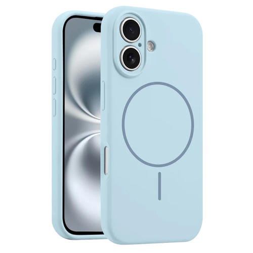 Funda de Silicona Líquida para iPhone 16 Magsafe con Orificios Finos (Azul)