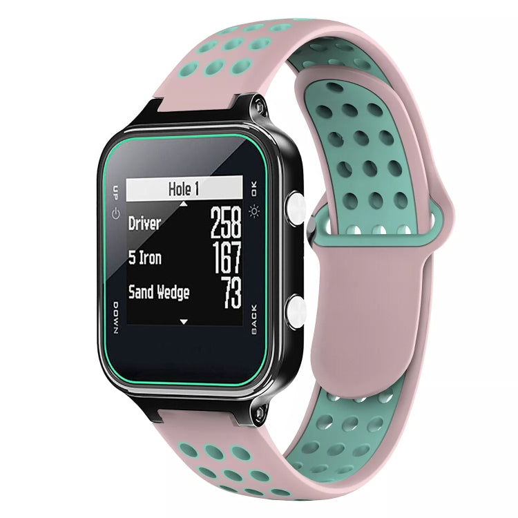 Correa de Reloj Garmin Approach S20 silicona transpirable perforada dos colores (Rosa + Verde Azulado)