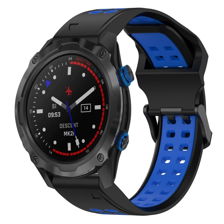 Correa de Reloj Garmin Descent Mk 2I 26mm silicona hebilla inversa dos colores (Negro + Azul)