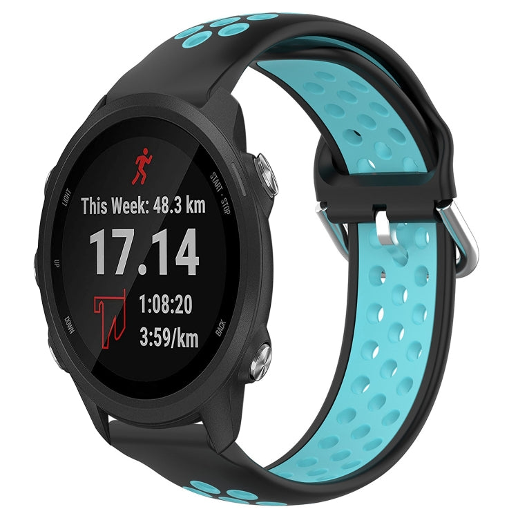 Correa de Reloj Garmin Forerunner 245 20mm Silicona Deportiva Transpirable Perforada (Negro + Azul)
