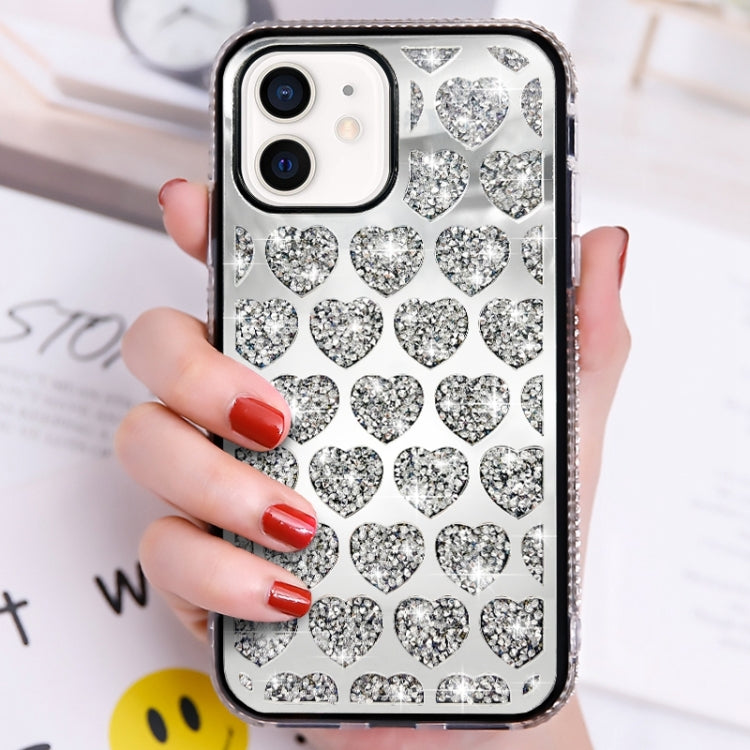 Funda para iPhone 11 Love Hearts Diamond Mirror TPU Phone Case (Plata)