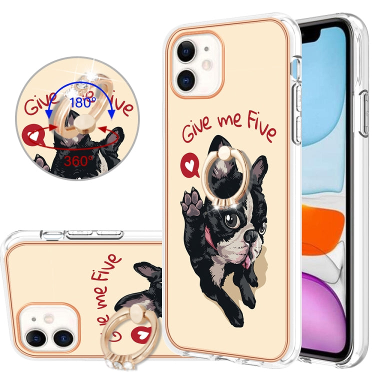 Funda para iPhone 11 Lucky Dog Galvanoplastia IMD Doble Cara con Soporte para Anillo