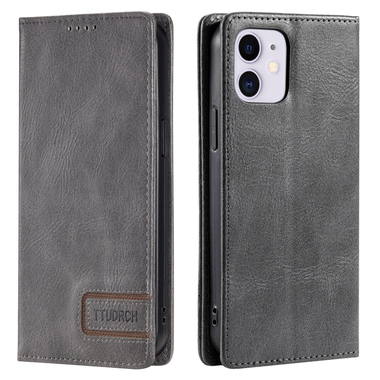 Funda de Teléfono Ttudrch para iPhone 11 Cuero Magnético con Textura Retro (Gris)