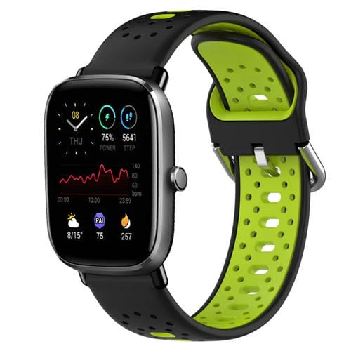 Banda de Reloj para Amazfit GTS 4 20mm Silicona Transpirable Dos Colores (Negro + Verde Lima)