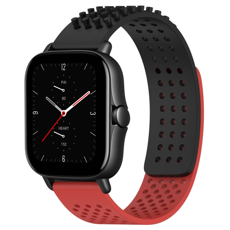 Correa de Silicona para Amazfit GTS 2 con Puntos 3D Transpirables y Orificios 20mm (Negro + Rojo)