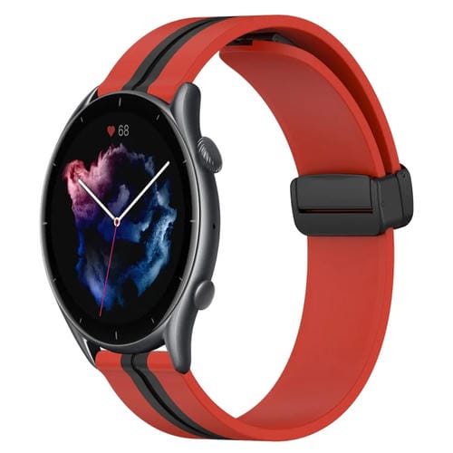 Correa de Reloj Amazfit 3 22mm Silicona con Cierre Magnético Plegable (Rojo + Negro)