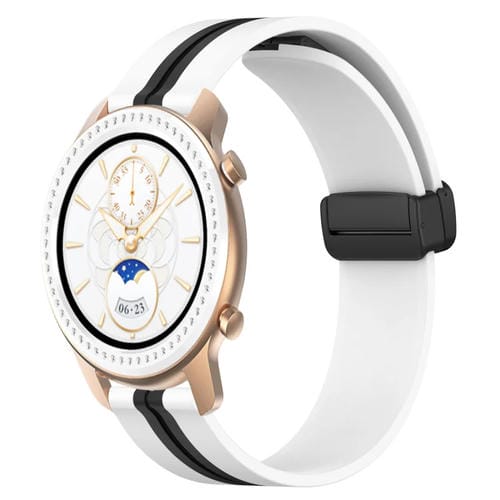 Correa de Reloj Silicona para Amazfit GTR 3 22mm con Cierre Magnético Plegable (Blanco + Negro)
