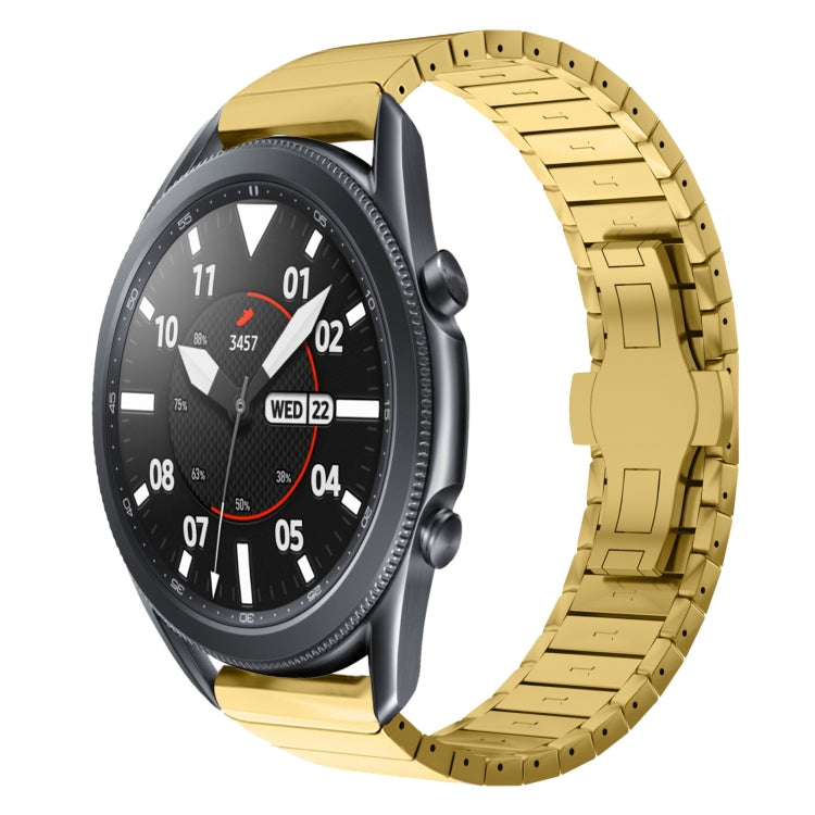 Correa de Reloj Aleación para Samsung Galaxy Watch3 45mm 22mm con Hebilla de Mariposa (Dorado)