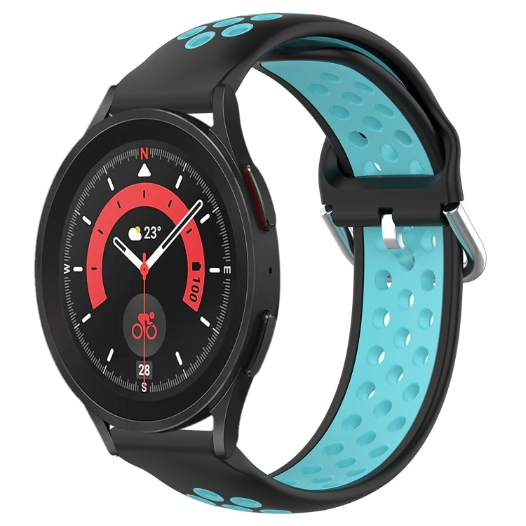 Banda de Reloj para Samsung Galaxy Watch 5 Pro 45mm 20mm Silicona Deportiva Perforada (Negro + Azul)