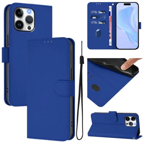 Funda para iPhone 16 Pro Max con Cordón y Tacto de Piel (Azul Oscuro)