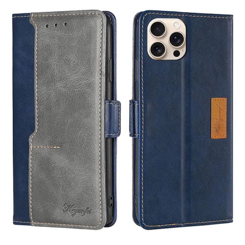Funda de Cuero con Hebilla Lateral y Color en Contraste para iPhone 16 Pro (Azul y Gris)