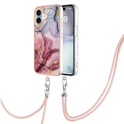 Estuche para Teléfono Imd Doble Cara Mármol Galvanizado iPhone 16 con Cordón (Rosa)