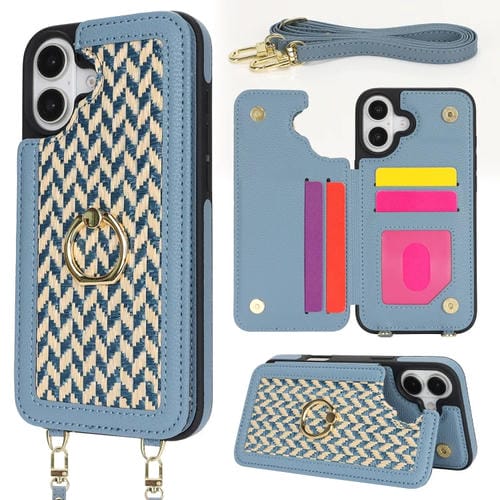 Funda para iPhone 16 Ranura para Tarjeta Doble Capa Cobertura Total Correa Cruzada (Azul)
