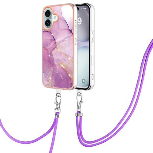 Estuche para Teléfono Imd Doble Cara Mármol Galvanizado iPhone 16 con Cordón (Púrpura)
