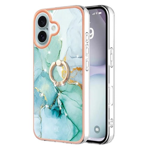 Funda para iPhone 16 Soporte para Anillo Revestimiento Mármol Imd TPU (Verde)