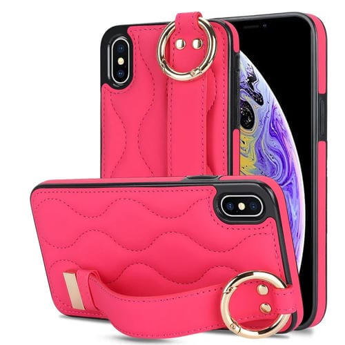 Funda para Teléfono iPhone Xs Max Antideslizante Cobertura Completa Anillo PU con Muñequera (Rosa Roja)