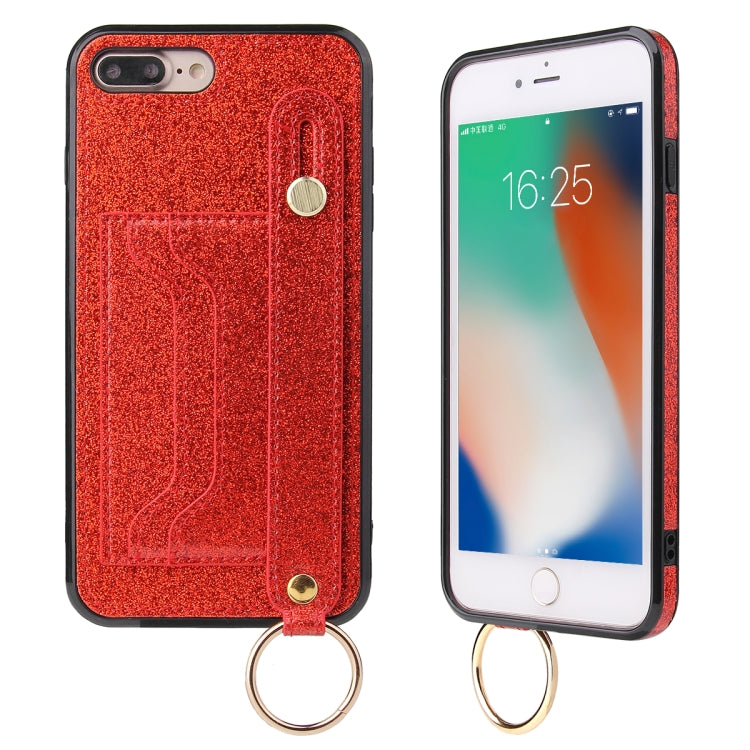Funda Protectora iPhone 8 Plus 7 Plus Glitter Powder PU TPU Soporte Ranuras Tarjetas Correa (Rojo)