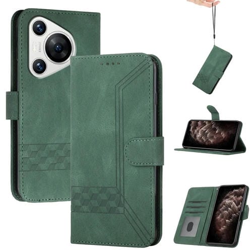 Funda de Cuero con Tapa para Huawei Pura 70 Cubic Skin Feel (Verde)