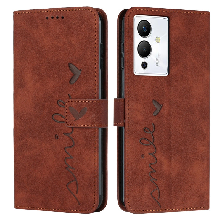 Funda de Cuero para Infinix Smart 6 Plus con Cordón y Skin Feel Heart Pattern (Marrón)