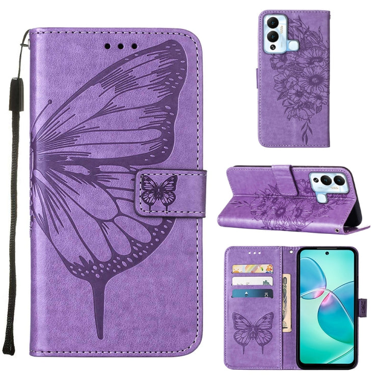 Estuche para Infinix Hot 12 X6817 de Cuero con Tapa Mariposa en Relieve (Púrpura)