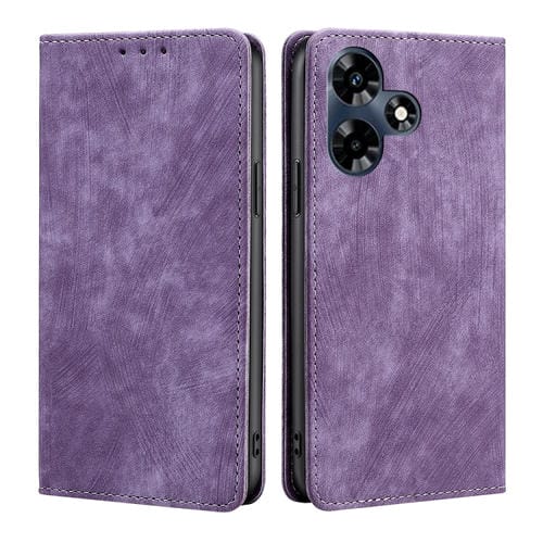 Funda de Cuero Magnética para Infinix Hot 30 4G con Rfid y Cepillo Antirrobo (Púrpura)