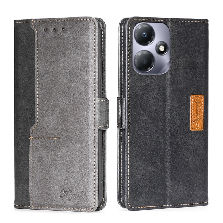 Caja de Teléfono de Cuero para Infinix Hot 30 Play 4G con Hebilla Lateral (Negro + Gris)