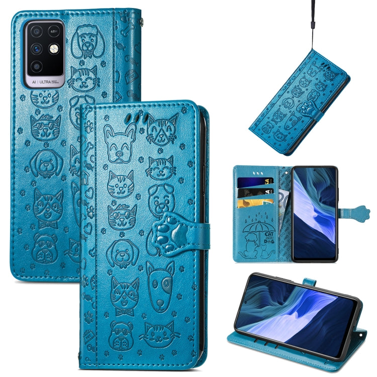 Funda de Cuero para Infinix Note 8 con Estampado de Gato y Perro, Soporte, Ranuras y Cordón (Oro)