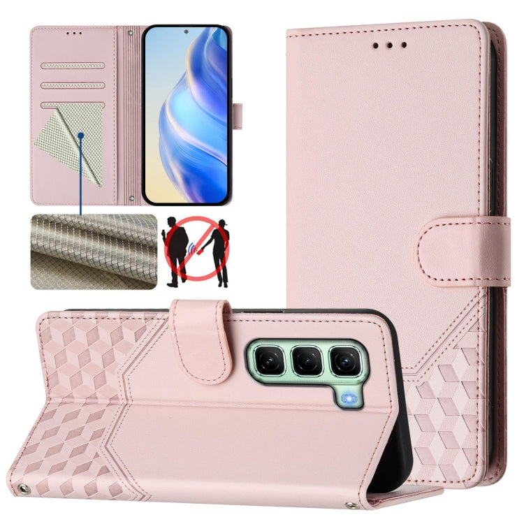Funda de Cuero Rfid con Relieve en Panal para Infinix Hot 50 4G (Rosa)