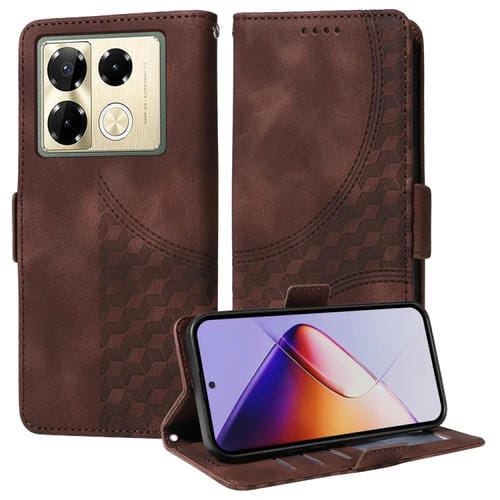 Funda de Cuero con Rombos y Estrellas para Infinix Note 40 Pro 4G/5G y Note 40 Pro+ (Marrón)
