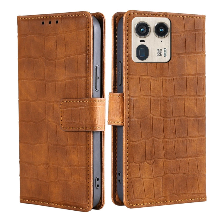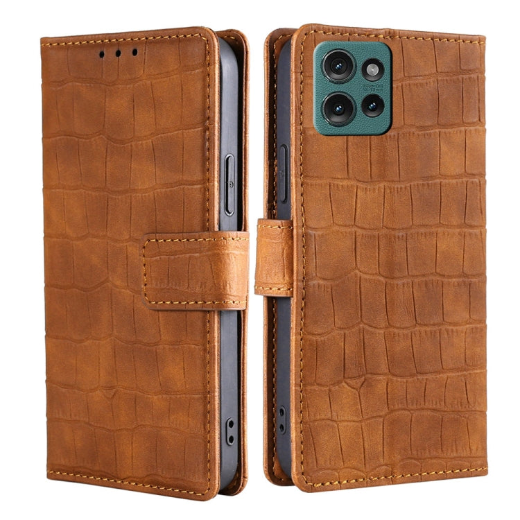 Funda de Piel con Cierre Magnético y Diseño de Cocodrilo para Motorola Edge 50 5G (Marrón)
