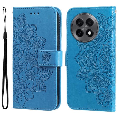Funda de Cuero con Relieve Flores Siete Pétalos para OnePlus 13R Ace 5 Ace 5 Pro (Azul)