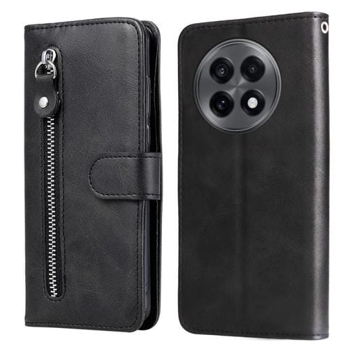 Funda de Piel con Cremallera y Textura de Becerro para OnePlus 13R/Ace 5/Ace 5 Pro (Negra)
