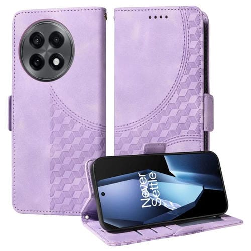 Funda de Cuero con Rombos y Estrellas para OnePlus 13R/Ace 5/Ace 5 Pro (Morado)
